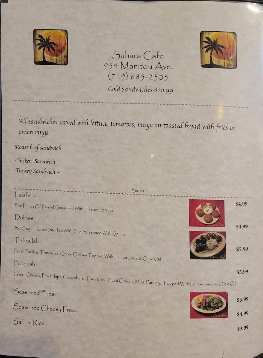 Visit Sahara Cafe at 954 Manitou Ave for a taste experience that promises comfort and bold flavors!